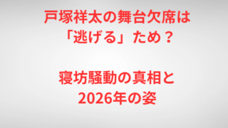 戸塚祥太の舞台欠席は「逃げる」ため?寝坊騒動の真相と2026年の姿A.B.C-Zの戸塚祥太さんに関する検索ワードで、ファンの間で根強く残っているのが「舞台」と「逃げる」という不穏な組み合わせです。これは、かつて彼が主演舞台の会見を欠席した際...
