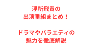 ◆☆◆芸能人◆☆◆ 浮所飛貴の演技力は?ドラマや映画の出演作から魅力を徹底解説