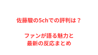 ◆◆佐藤駿 佐藤駿の5chでの評判は?ファンが語る魅力と最新の反応まとめ